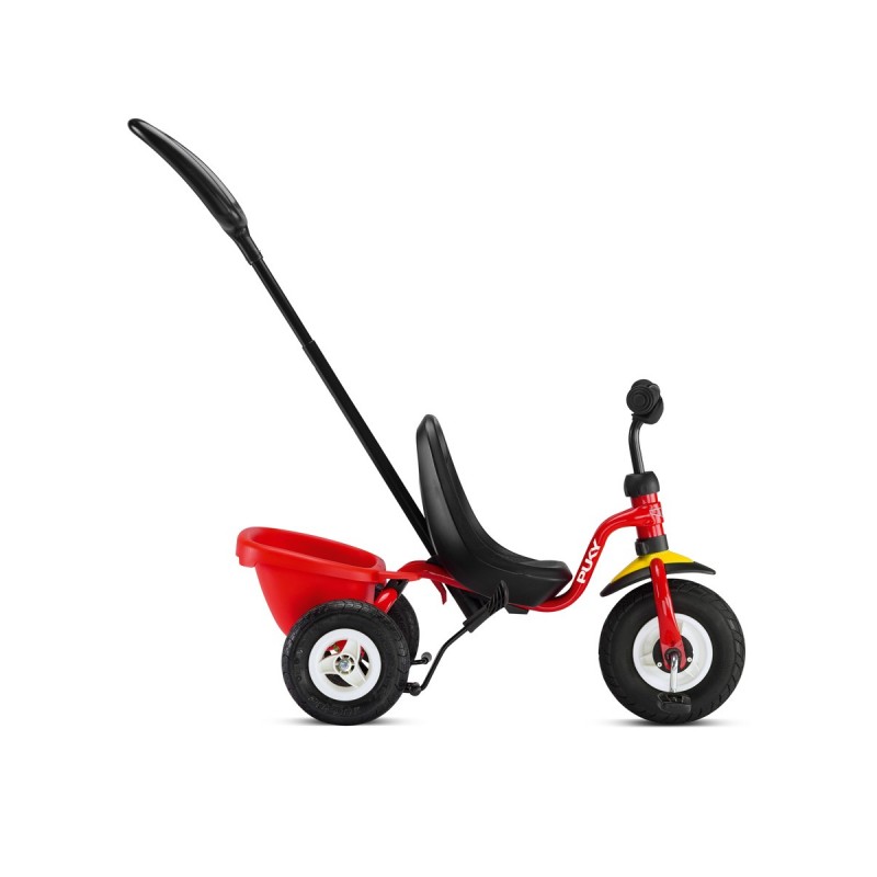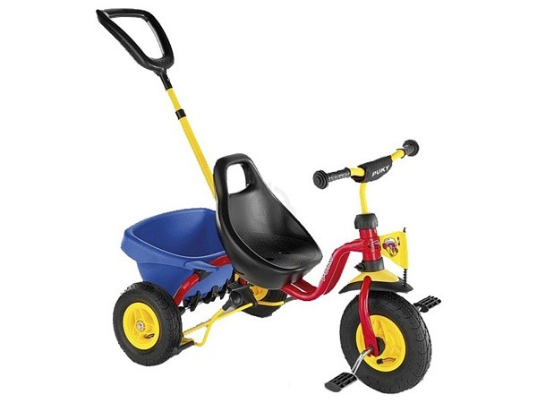 Во всех трехколесных велосипедах Puky родительская ручка не поворотная, зато абсолютно надежная. Поворот велосипеда осуществляется при наклоне его с помощью ручки назад. Надежность ручки позволяет выполнять такие маневры безо всяких усилий. Родительская ручка с удобной рукояткой регулируется по длине 90-109 см и легко снимается.