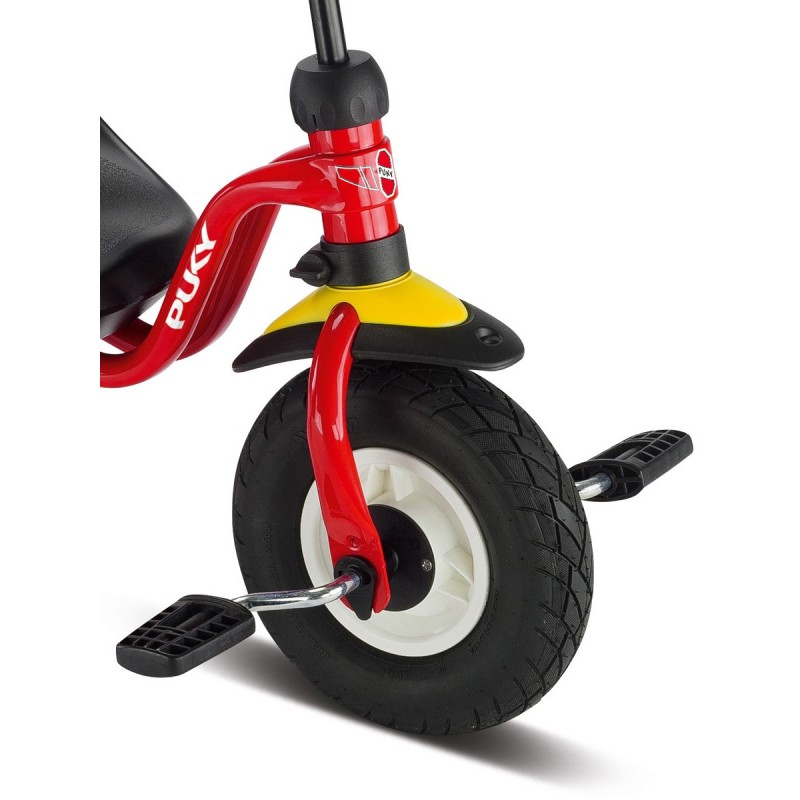 Трехколесный велосипед Puky Ceety Air имеет надувные колеса для мягкого хода на любом покрытии. Можно установить свободный ход вращения рулевого колеса, заблокировать руль или ограничить угол поворота руля.