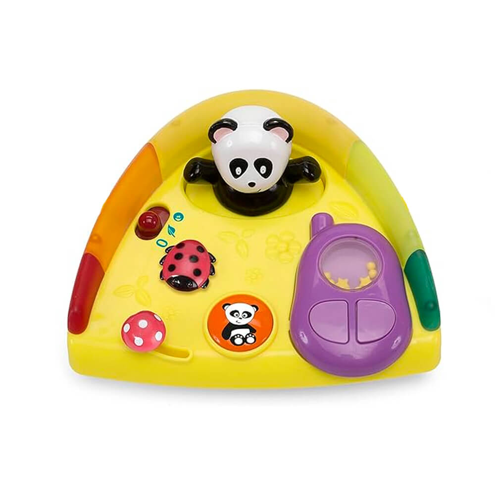 - стимулируют развитие слуховых, зрительных и тактильных навыков благодаря съёмной интерактивной игровой панели с множеством развлечений.