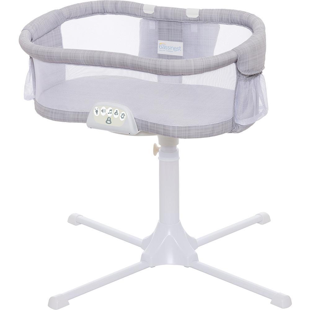 - Bassinest® имеет прочное 4-точечное основание, которое регулируется по высоте кровати.