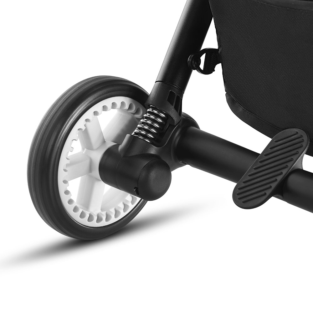 Детская коляска Cybex Eezy S Twist (сайбекс изи эс твист) - Легкая прогулочная коляска для ребенка от 3 месяцев до 17 кг с поворотным на 360 градусов сидением. Само сидение в коляски просторное, с высокой спинкой. Спинка опускается до 175 градусов с помощью ременной системы. Большой капюшон из двух секций и дополнительным козьрьком закроет ребенка от яркого солнца. Для безопасности ребенка в коляске предусмотрены 5-ти точечные ремни безопасности. Фиксатор от раскладывания фиксирует коляску в сложенном виде. Все колеса оснащены пружинной амортизацией, а за счет узкой колесной базы проедут там, где другие коляски просто не продут.
