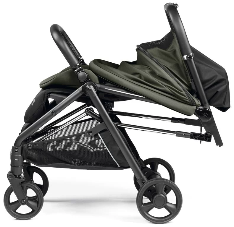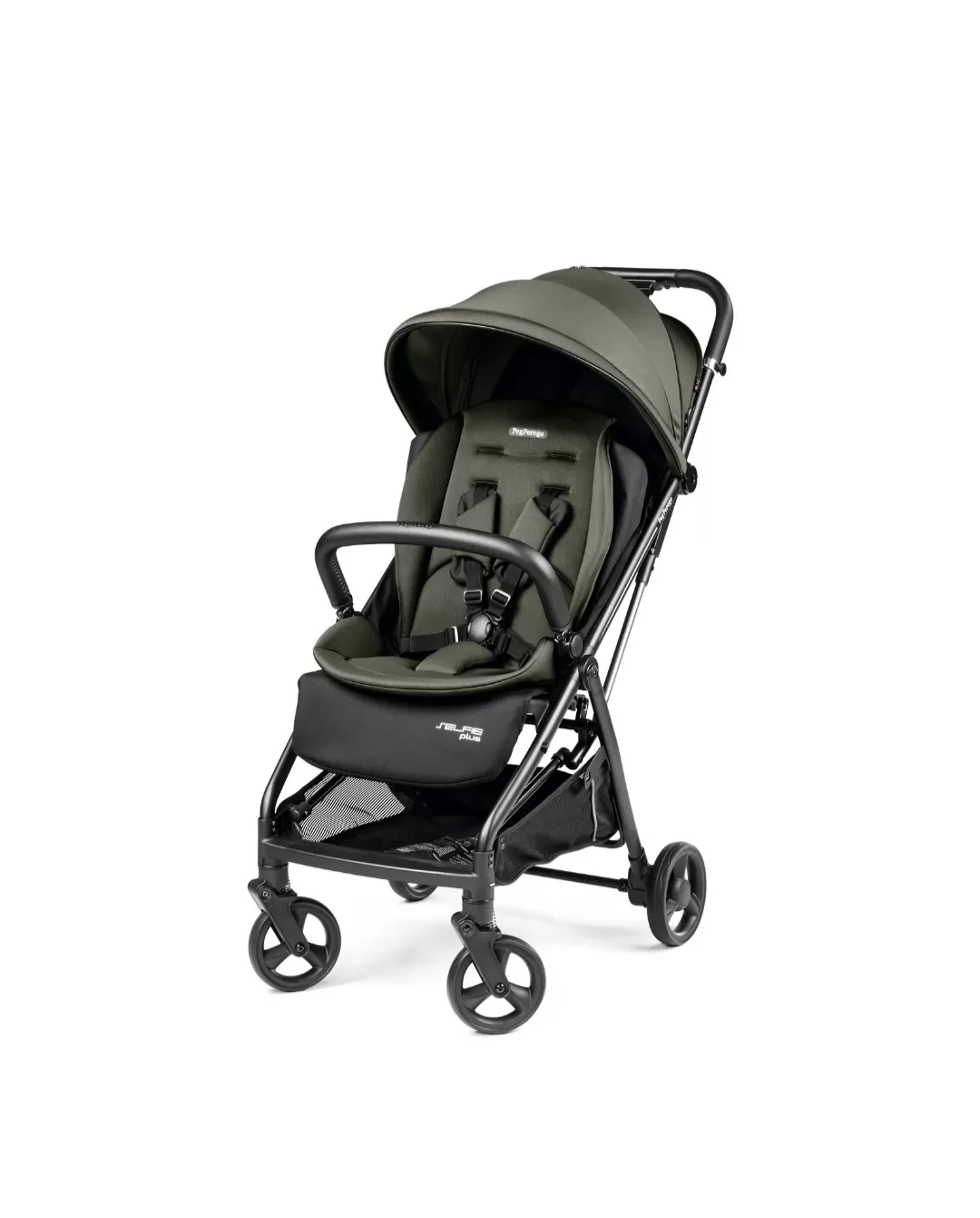 Прогулочная коляска Peg Perego Selfie Plus (темно-зеленого цвета) подходит для детей от рождения и до 22 кг, весит 7,6 кг, компактно складывается.