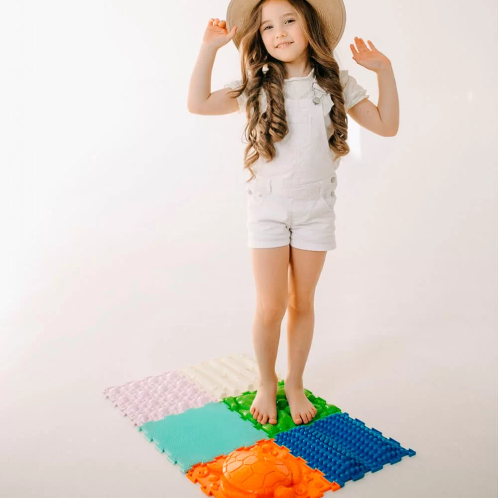 Модули напольного покрытия ОРТО крепятся между собой по принципу детского "пазла". Вы и ваш ребёнок сами можете выбирать размер и форму массажного ортопедического коврика. Яркие цвета ковриков ОРТО позволяют также изучать с малышом цвета. Ребенок дошкольного возраста вполне сможет собрать свой детский коврик сам, совмещая модули разных цветов по своему желанию. Поэтому сборка ОРТО может стать элементом игры и одним из способов развития моторики у детей.