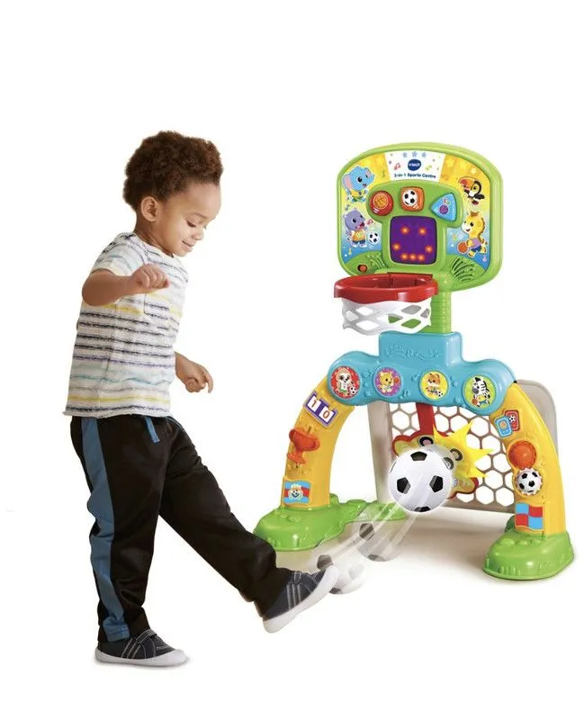 Спортивный центр - эта веселая и красочная детская игрушка, имеющая множество функций, которые развлекут и порадуют детей. Стреляйте в корзину, забивайте гол или попадайте в цель! Исследуйте больше функций, включая поворотные механизмы и выдвижной трофей.