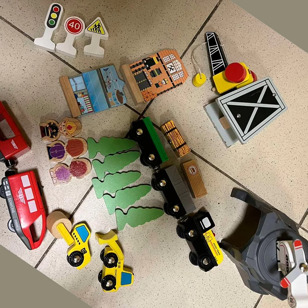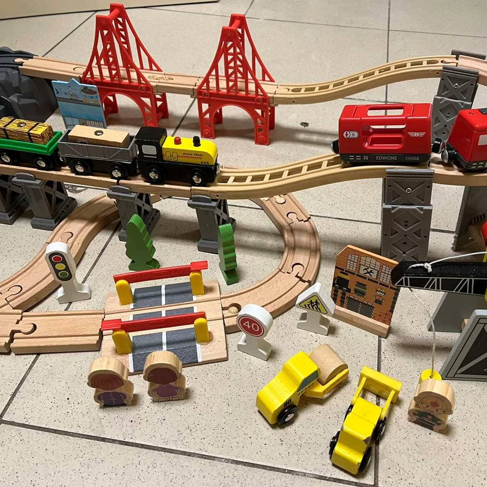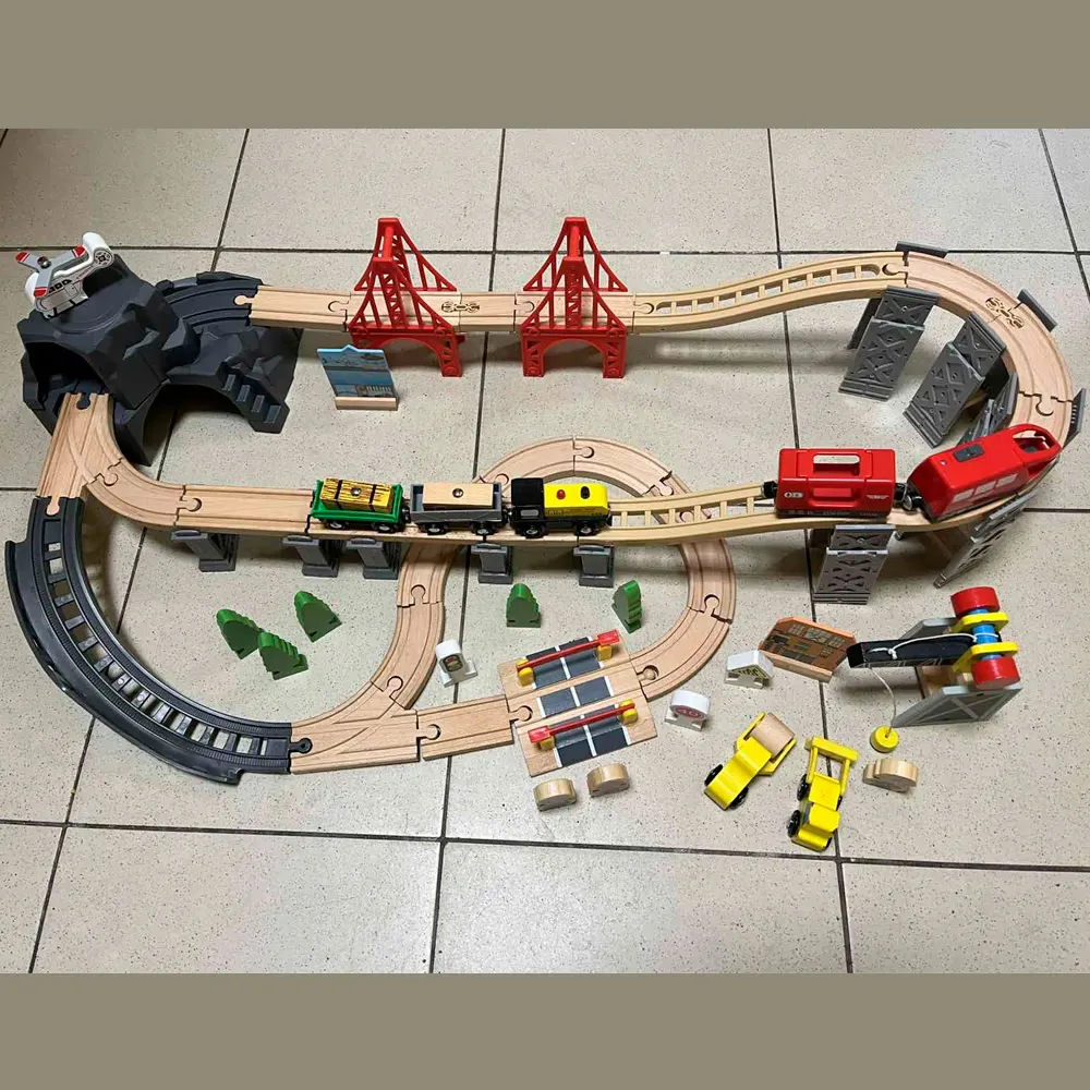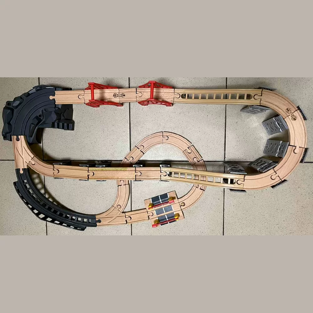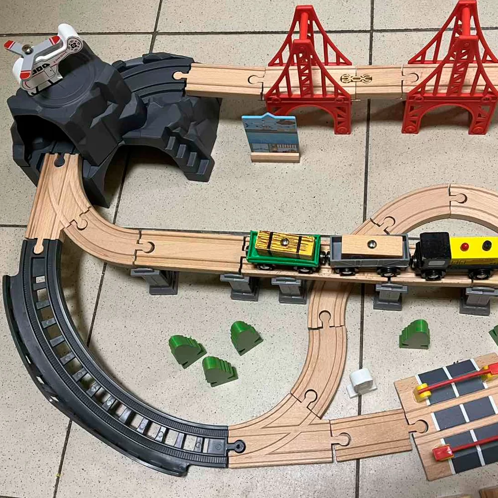 Железная дорога с горами и поездом на батарейках совместима с другими дорогами IKEA, BRIO, Balbi, Roys, Woody, Ikea,Lilaboo, Woodentoys и других производителей.