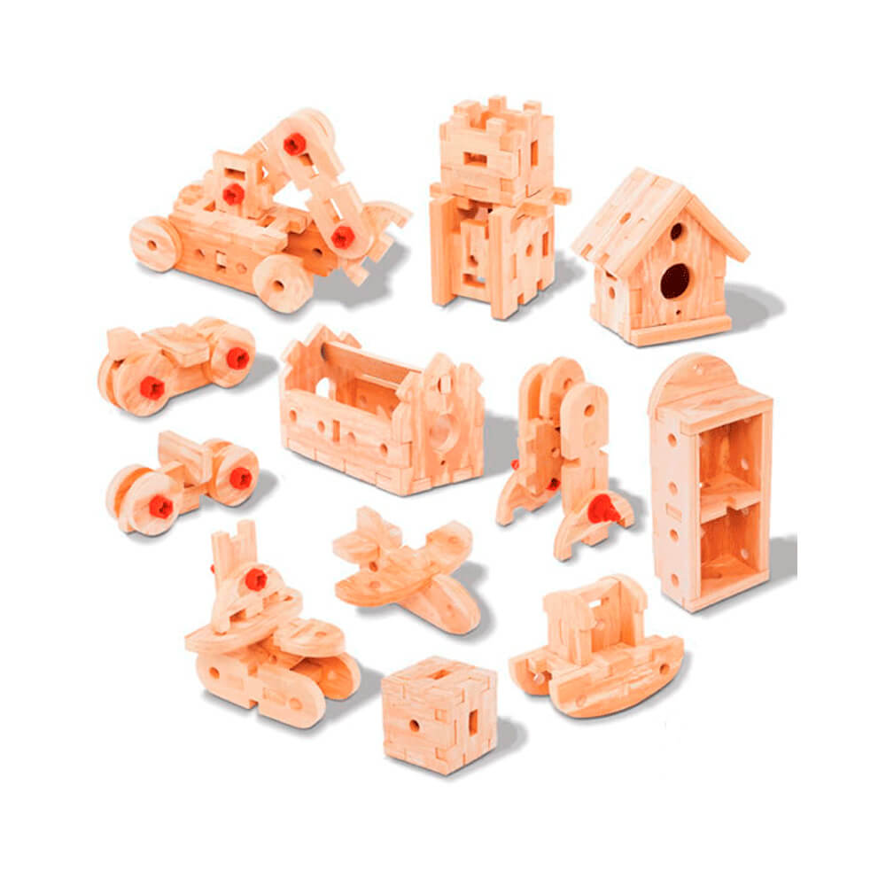 - В комплекте: инструкция для моделирования, электрическая дрель (требуется 2 батарейки АА), 3 насадки к дрели, универсальные тиски, 8 винтов, 8 гаек, пила, молоток, 42 детали из пенополистирола для моделирования.