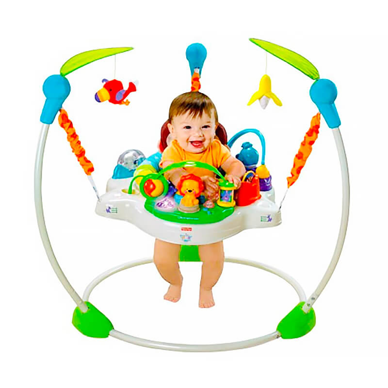 Можно весело играть и прыгать (прыжки активируют огни и звуки) со всеми игрушками вокруг – и над головой – при этом сиденье вращается, что позволяет малышу исследовать все игрушки.