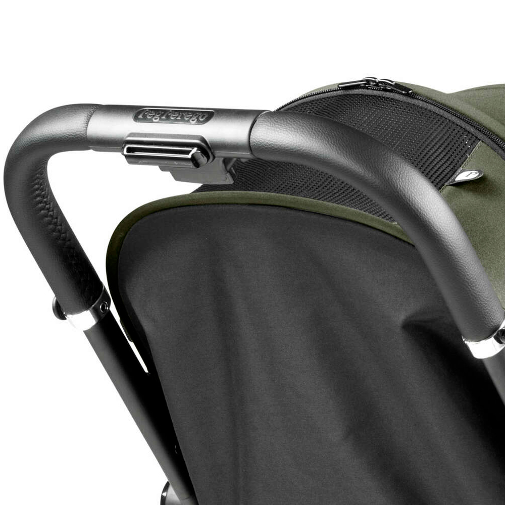 - Съемный бампер из искусственной кожи становится ручкой для переноски коляски в сложенном виде.