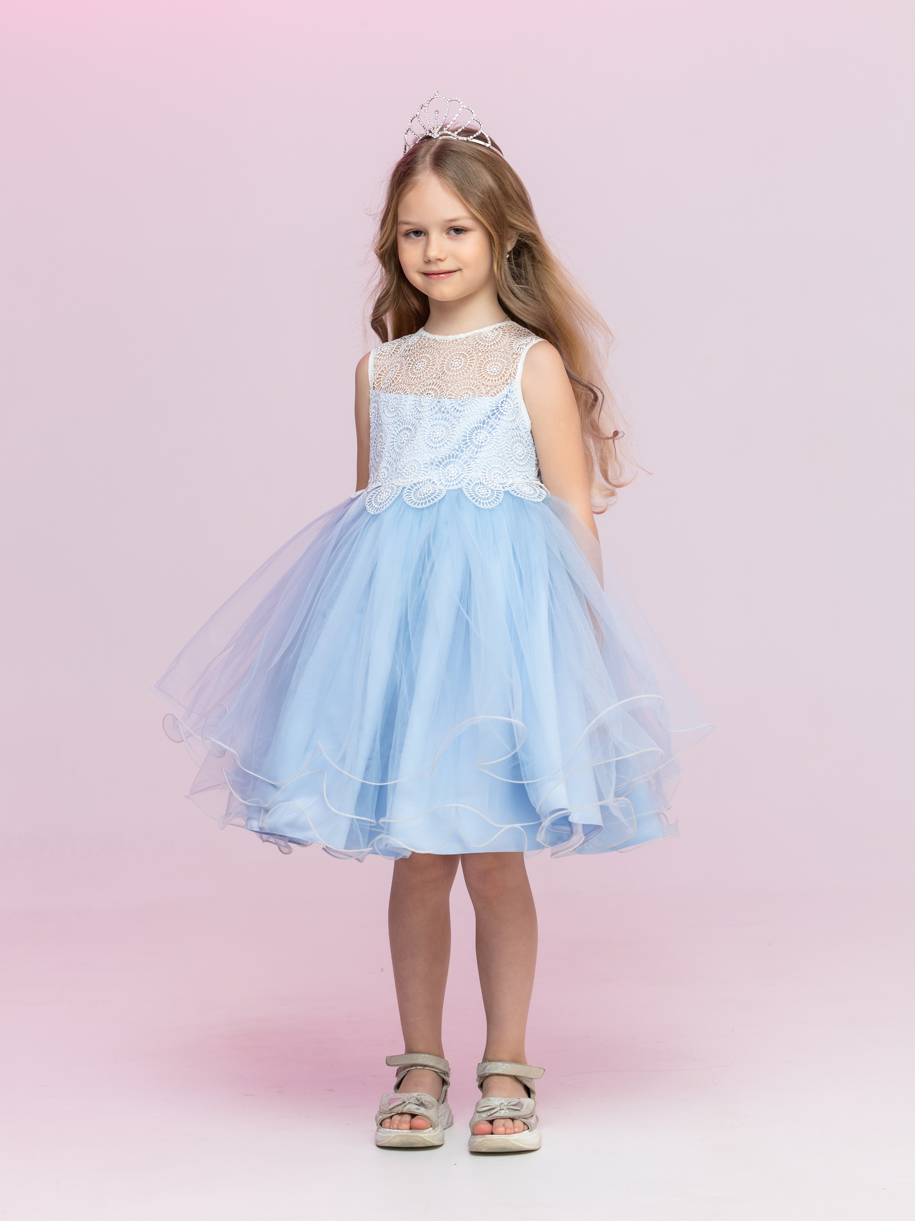 Нарядное платье "Аура" -очаровательное нарядное платье с многослойной юбочкой. Очень красивая и удобная модель, выполненная в голубом цвете. Ребенку комфортно на любом мероприятии. Идеальное платье для праздников, семейных торжкств, вечеринок и фотосессий обеспечит повышенное внимание и гарантирует комплименты!