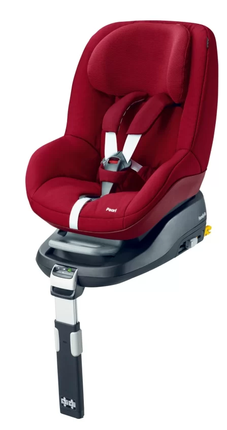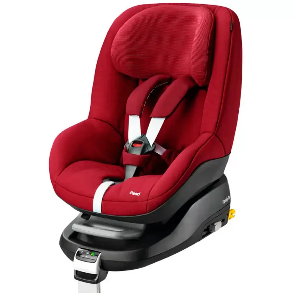 Maxi-Cosi Pearl - предназначено для детей от 9 месяцев до 4 лет (или весом от 9 до 18 кг). Специальная анатомическая форма сиденья рассчитана на длительные путешествия в автомобиле. Предусмотрено 5 положений наклона, включая глубокий угол для отдыха. Кресло имеет мягкую ортопедическую вкладку в подголовнике и дополнительную защиту в области шеи и головы ребёнка, защищая от боковых ударов. Ремни регулируются по высоте вместе с подголовником, имеют 7 вариантов настроек по высоте. Наружный чехол из гипоаллергенных тканей легко снимается для стирки. Автокресло Maxi-Cosi Pearl не имеет собственного основания для крепления и устанавливается на базу Familyfix лицом по ходу движения. База крепится при помощи isofix и имеет упор в пол.