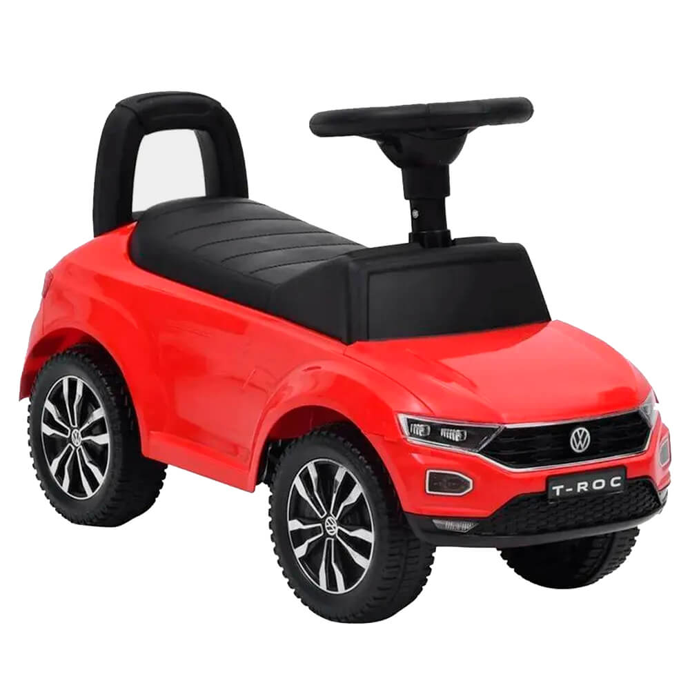 Детская каталка Volkswagen T-Roc выполнена по лицензии знаменитого бренда: обтекаемый корпус, фары (без подсветки), радиаторная решетка и фирменная эмблема.