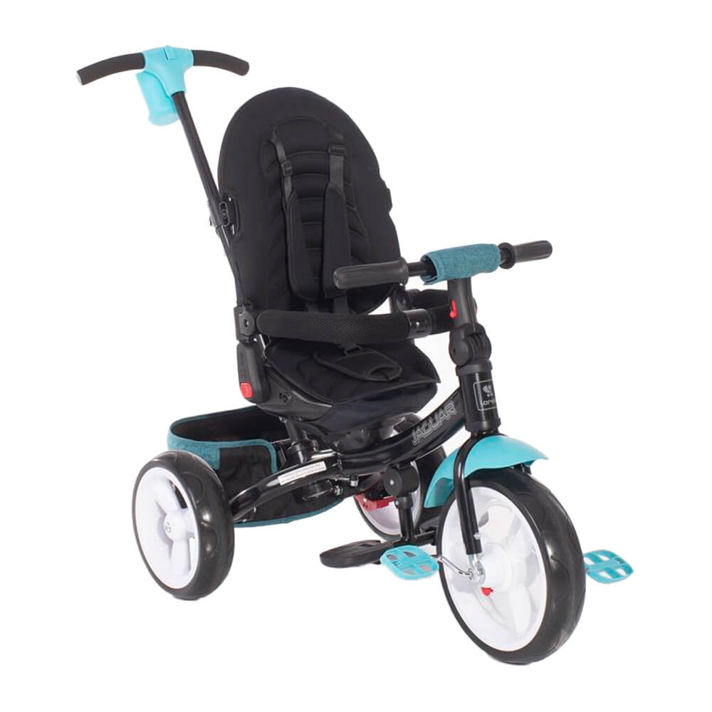 Трехколесный велосипед Lorelli JAGUAR EVA предназначен для детей от 12 до 36 месяцев и весом не более 20 кг. Трехколесный велосипед имеет надежную и удобную стальную конструкцию. Колеса цельные EVA. Во время катания на велосипеде у ребенка есть возможность крутить педали самостоятельно. Для комфорта предусмотрена регулировка наклона спинки, а также солнцезащитный капюшон.