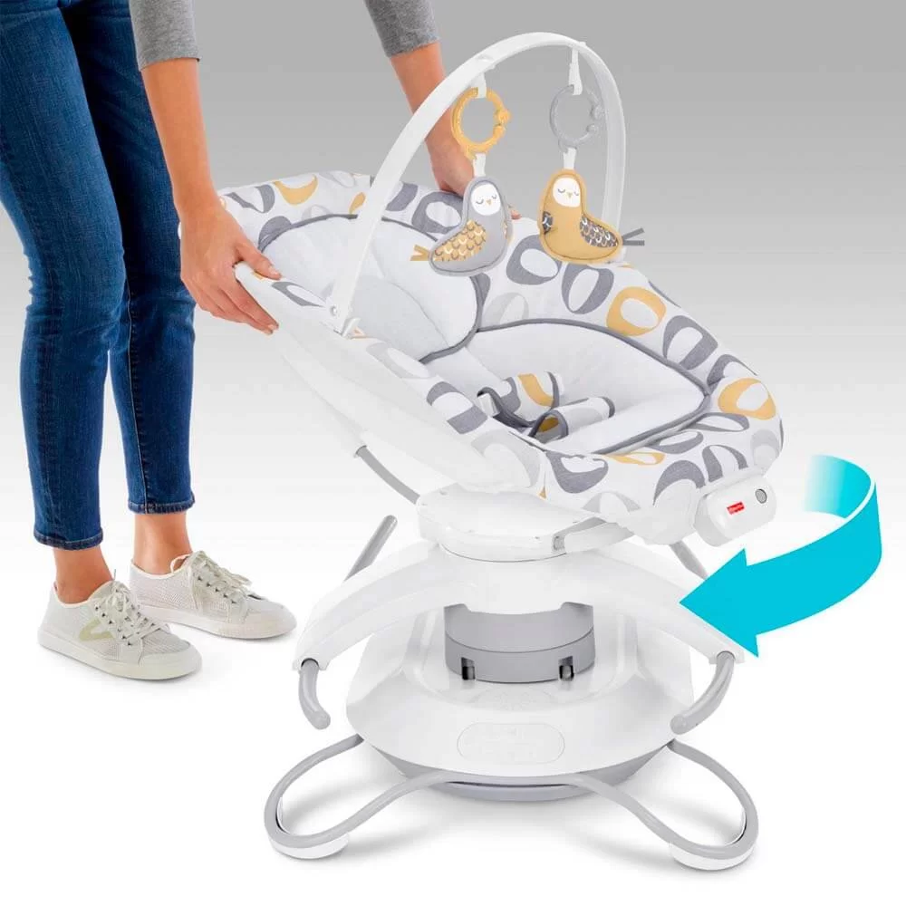 Качели-шезлонг 2-in-1 Soothe'n Play Glider Plus "Планер" от Fisher-price можно использовать от рождения до того момента, когда ребенок научиться сидеть самостоятельно или достигнет веса 11 кг. Качели имеют современный дизайн не занимают много места. Планер может раскачиваться вперед-назад или из стороны в сторону на шести различных скоростях, с 16 успокаивающими песнями или звуками природы на выбор. А детское кресло снимается, превращаясь в переносную качалку с успокаивающими вибрациями для дополнительного комфорта. Сенсорика: дружелюбные игрушки-животные над головой развивают зрительные навыки вашего ребенка, а нежная музыка стимулирует его слух.