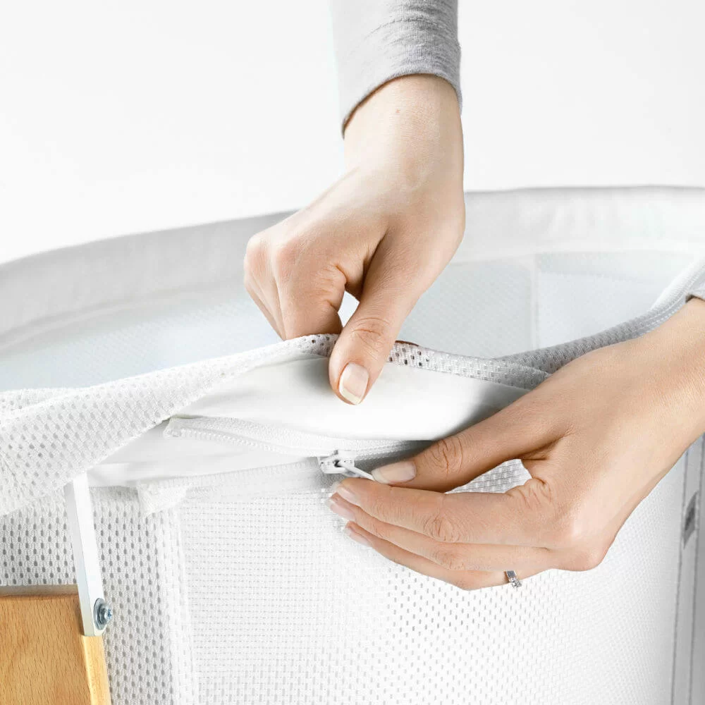 Ткань кроватки для новорожденного легко снимается и стирается в машине при 40˚C. Матрас и чехол подлежат машинной стирке при 60 ˚C.