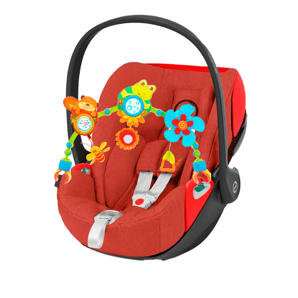Дуга с подвесными игрушками подходит к любой коляске, может быть закреплена на детской кроватке, автомобильном кресле. Удобно устанавливается благодаря уникальной конструкции - с угловыми регуляторами. Вы можете сами выбирать угол наклона дуги. Удобно и весело играть с большим количеством позитивных солнечных игрушек.