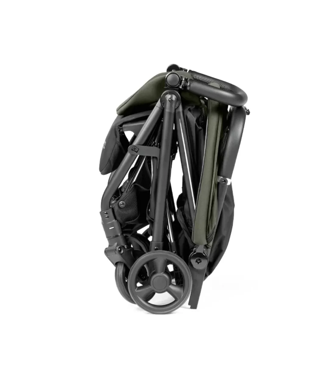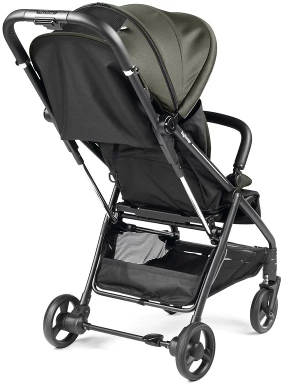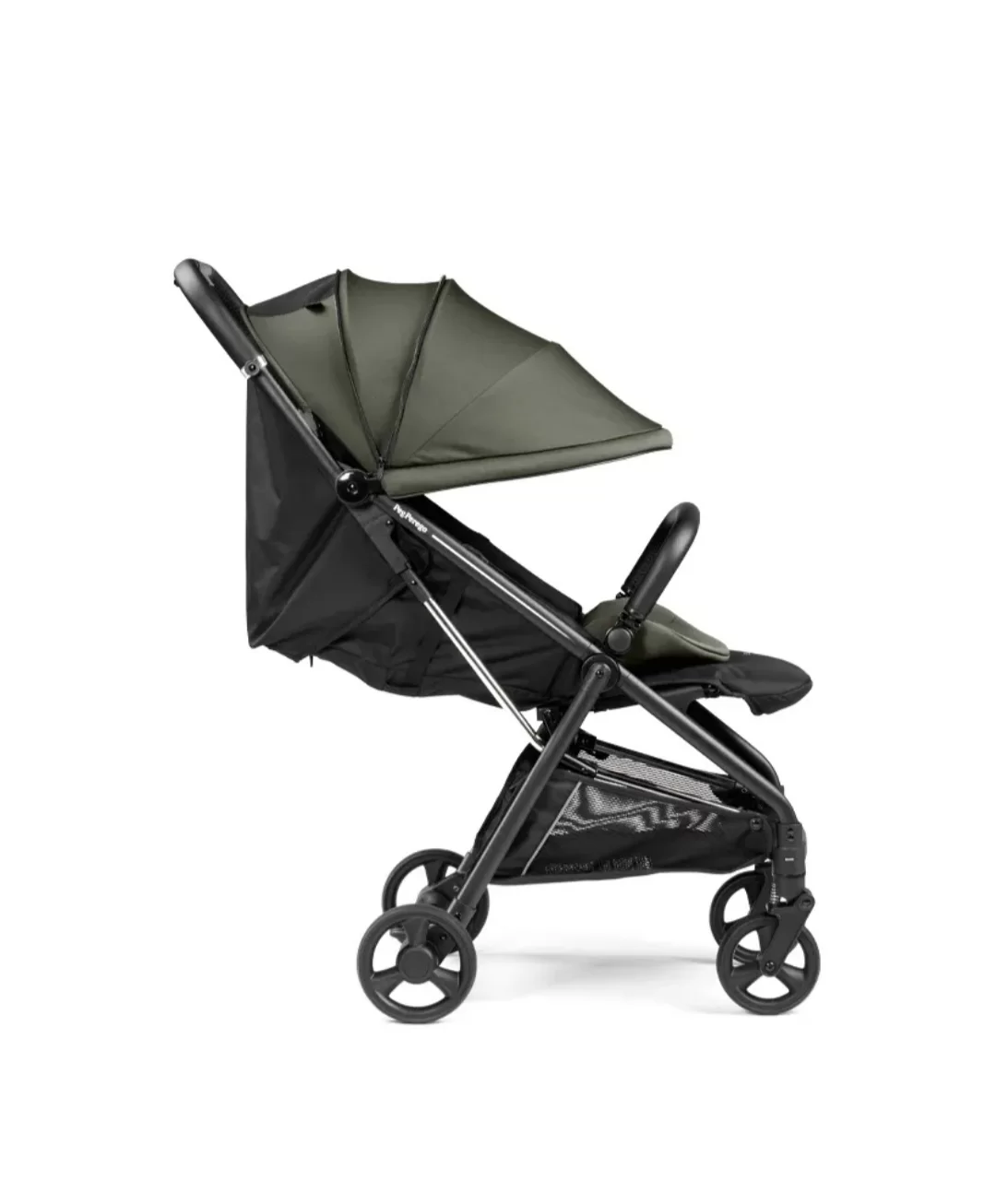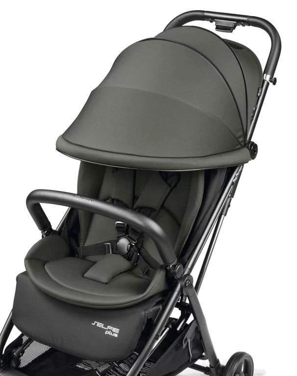 Прогулочная коляска Peg Perego Selfie Plus (темно-зеленого цвета) подходит для детей от рождения и до 22 кг, весит 7,6 кг, компактно складывается.