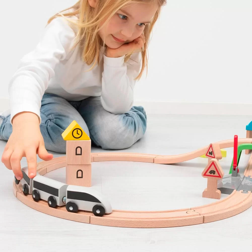 Игрушка IKEA ЛИЛЛАБУ железная дорога деревянная