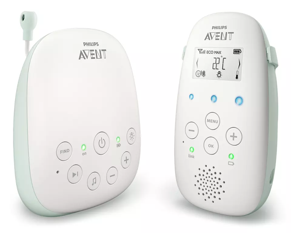 Радионяня PHILIPS AVENT SCD711/52 обеспечивает безопасное и конфиденциальное соединение при помощи технологии DECT без помех от других устройств. Энергосберегающий режим Smart ECO оптимизирует передачу аудио, автоматически снижая мощность передачи и продлевая срок службы батареи. Чем ближе устройство расположено к ребенку, тем меньше энергии тратится на обеспечение надежного соединения. Рабочий диапазон в помещении — до 50 метров, вне помещения — до 330 метров. Удобный родительский блок с беспроводной связью не требует подзарядки в течение 18 часов. 3 индикатора уровня звука указывают на уровень шума в детской комнате. Свет ночника и 5 колыбельных успокоят малыша. С помощью функции обратной связи вы сможете связаться с малышом из любой части дома. Датчик отслеживает температуру воздуха в детской, а настраиваемые оповещения дадут понять, если она изменится.